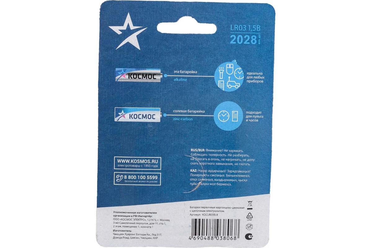 Батарейка Космос KOCLR03BL8 серебро/голубой (ААА (R03;LR03;FR03) 1,5 В щелочная (алкалиновая)) - Интернет-магазин ВСЁ В ОДНОМ.РФ: бытовая техника, электроника, товары для дома и др.