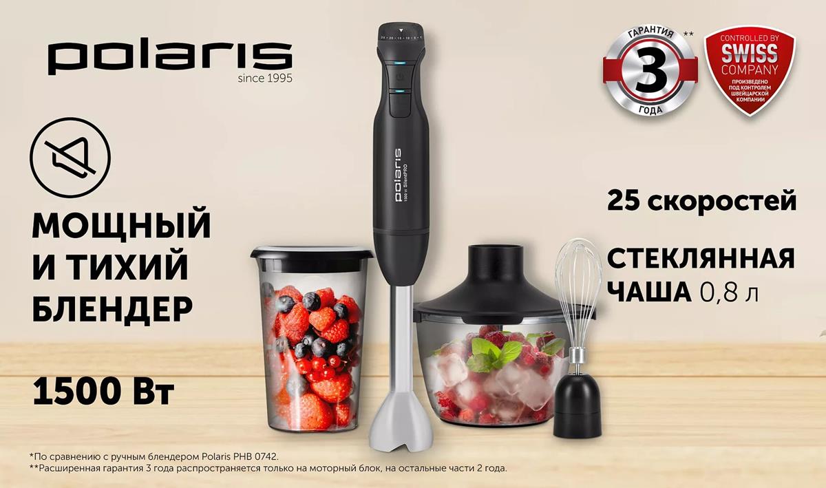 Блендер Polaris PHB 1510GL Silent (погружной/1500 Вт/черный) - Интернет-магазин ВСЁ В ОДНОМ.РФ: бытовая техника, электроника, товары для дома и др.
