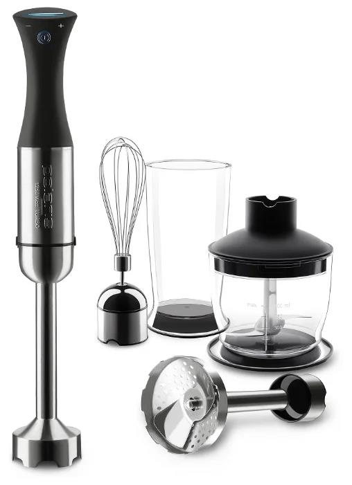 4 в 1: Измельчитель, Блендер, Венчик, Насадка для пюре. Сенсорное управление c подсветкой. Эргономичная форма ручки. Низкий уровень шума. Насадка для пюре выполнена из высококачественной стали. Венчик для взбивания из нержавеющей стали. Чаша измельчителя объемом 0,6 л с крышкой-подставкой. Мерный стакан объемом 1 л с крышкой-подставкой. Удобен в применении и очистке.