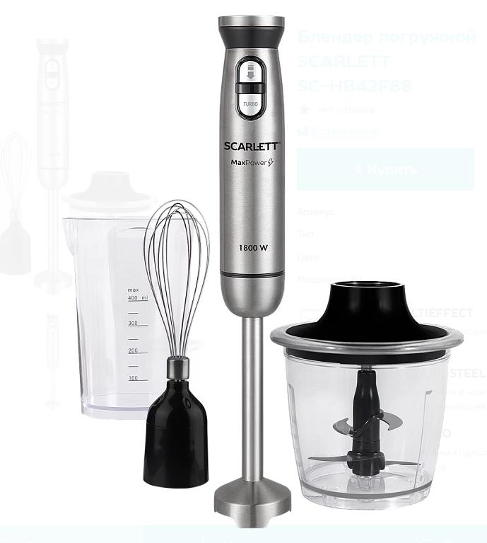 Блендер Scarlett SC-HB42F88 (сталь) (погружной/1800 Вт/серебристый, черный) - Интернет-магазин ВСЁ В ОДНОМ.РФ: бытовая техника, электроника, товары для дома и др.