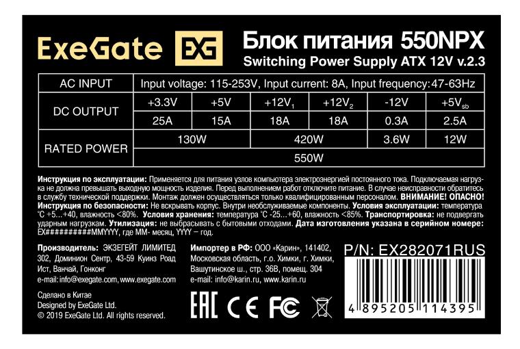 Блок питания ExeGate 550NPX (EX284705RUS) (550 Вт )