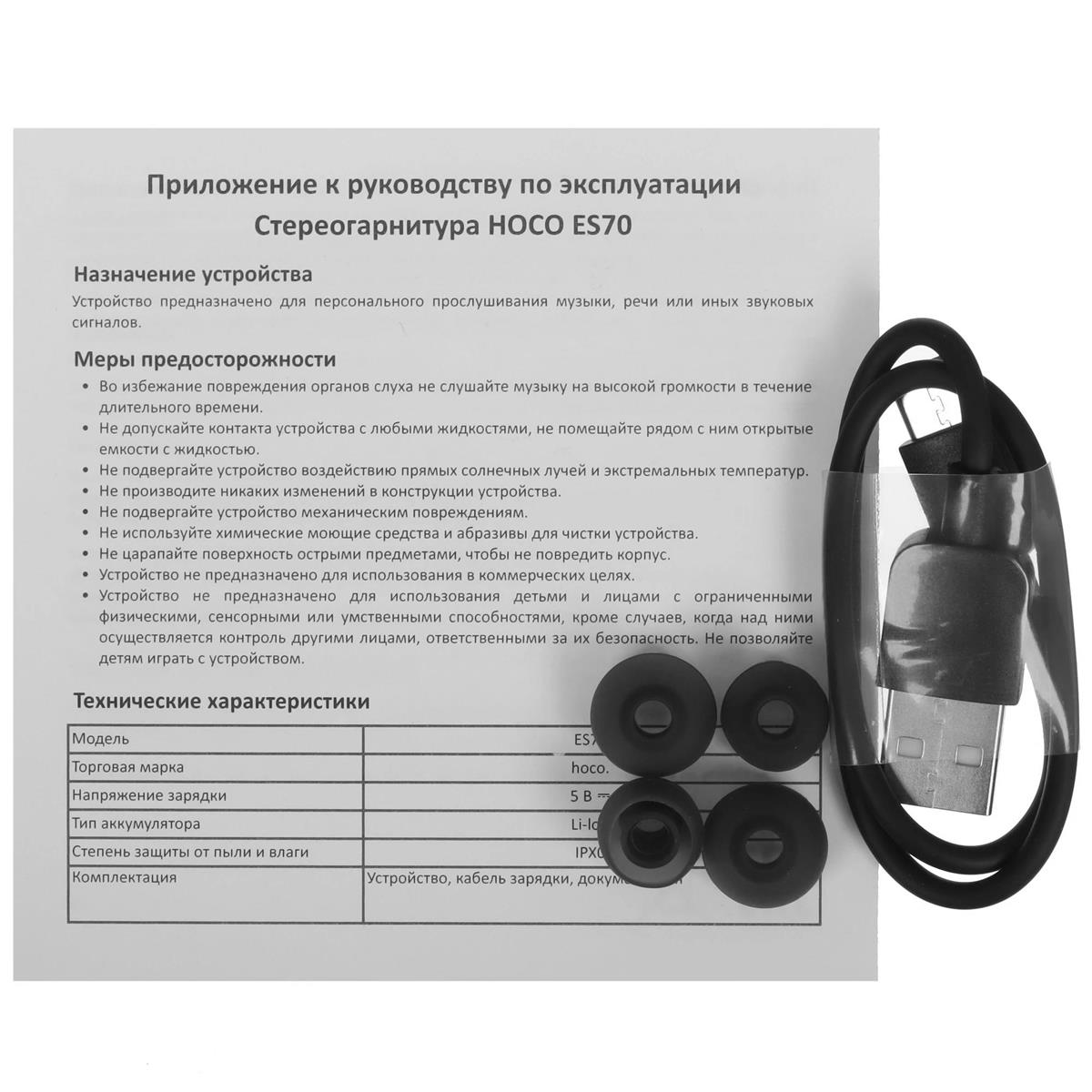 Bluetooth-гарнитура/наушники Hoco ES70 (черный) - Интернет-магазин ВСЁ В ОДНОМ.РФ: бытовая техника, электроника, товары для дома и др.