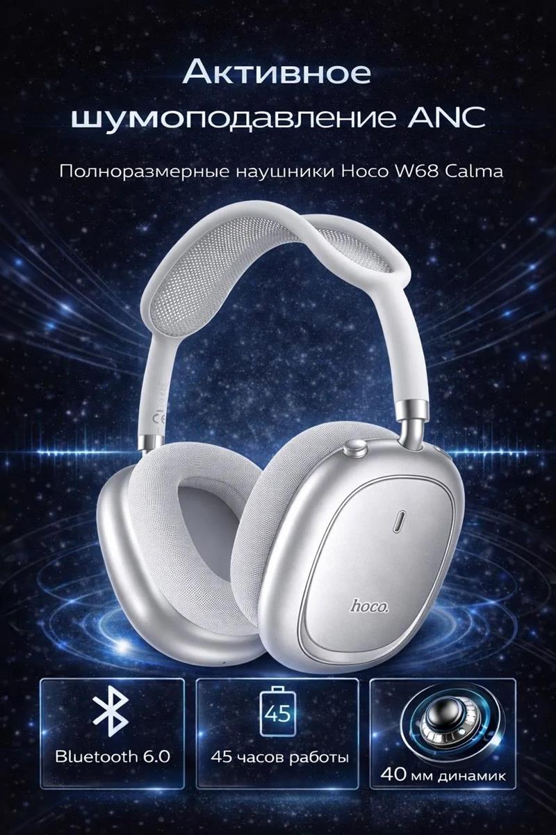Bluetooth-гарнитура/наушники Hoco W68 Calma (серебристый)