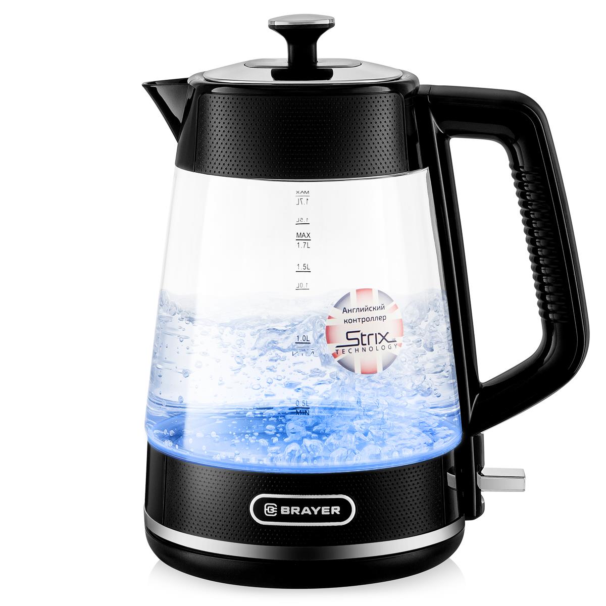 Электрический чайник Brayer BR1071 (2200 Вт/1,7 л /стекло, пластик/черный) - Интернет-магазин ВСЁ В ОДНОМ.РФ: бытовая техника, электроника, товары для дома и др.