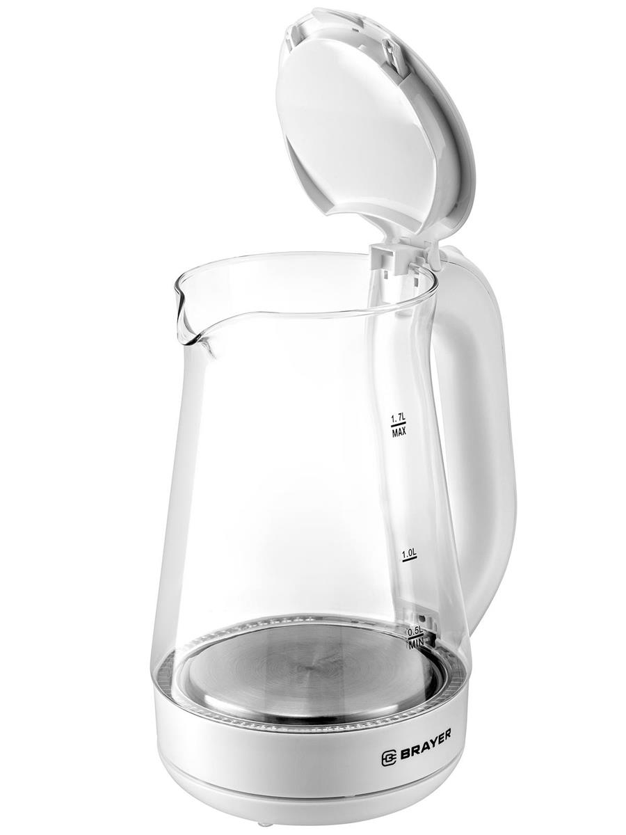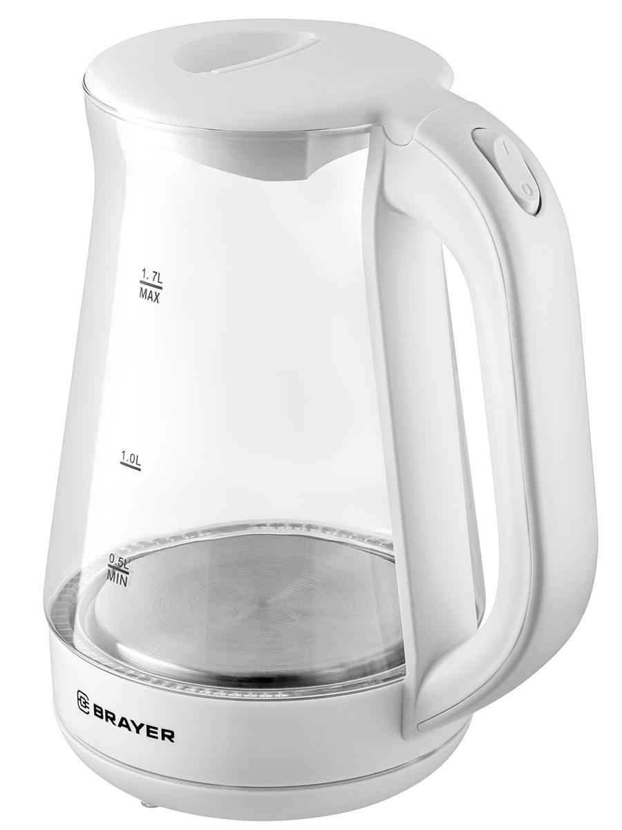 Электрический чайник Brayer BR6112WH (2200 Вт/1,7 л /стекло/прозрачный, белый) - Интернет-магазин ВСЁ В ОДНОМ.РФ: бытовая техника, электроника, товары для дома и др.