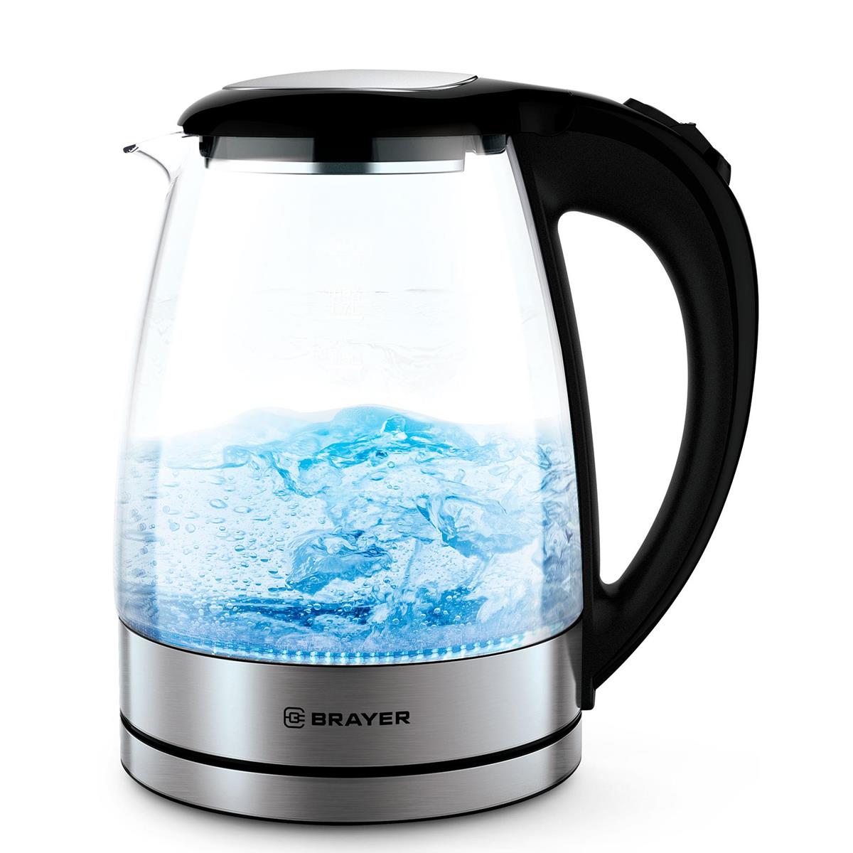 Электрический чайник Brayer BR6116 (1800 Вт/1,7 л /стекло/прозрачный, черный, серебристый)