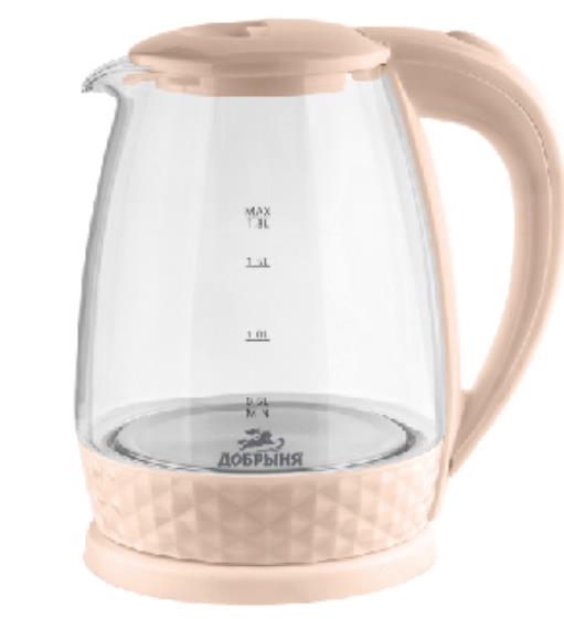 Электрический чайник Добрыня DO-1252C (1800 Вт/1,8 л /стекло, пластик/бежевый, прозрачный) - Интернет-магазин ВСЁ В ОДНОМ.РФ: бытовая техника, электроника, товары для дома и др.