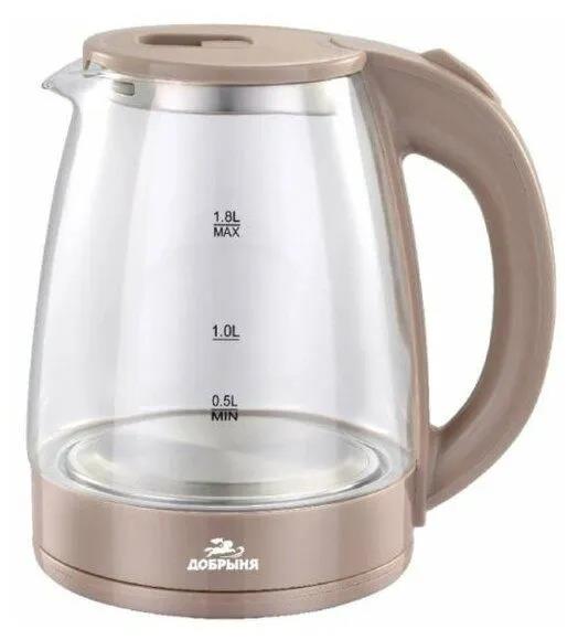 Электрический чайник Добрыня DO-1254B (1800 Вт/1,8 л /стекло, пластик/бежевый, прозрачный) - Интернет-магазин ВСЁ В ОДНОМ.РФ: бытовая техника, электроника, товары для дома и др.