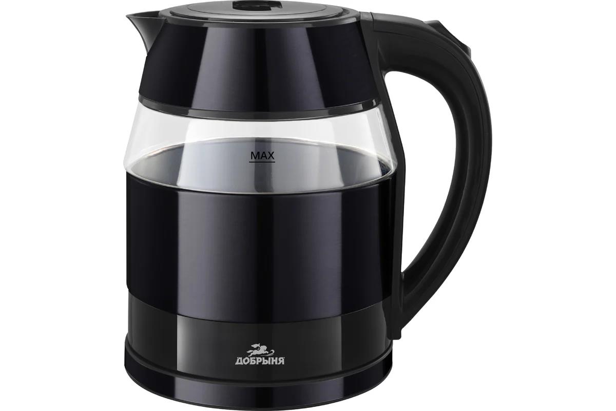 Электрический чайник Добрыня DO-1267D (1800 Вт/1,8 л /стекло, нержавеющая сталь/прозрачный, черный) - Интернет-магазин ВСЁ В ОДНОМ.РФ: бытовая техника, электроника, товары для дома и др.
