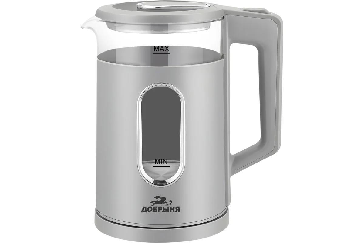 Электрический чайник Добрыня DO-1271G (1500 Вт/1,8 л /стекло, пластик/серый, прозрачный) - Интернет-магазин ВСЁ В ОДНОМ.РФ: бытовая техника, электроника, товары для дома и др.
