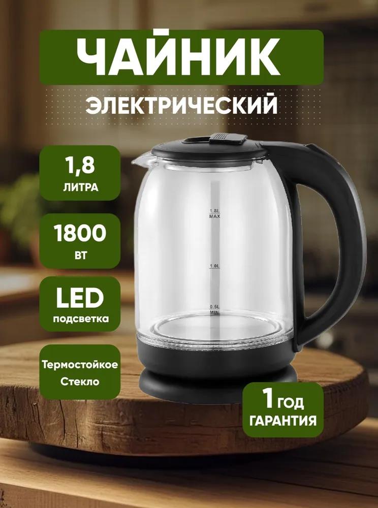 Электрический чайник Добрыня EC-113 (1,8л) 1800Вт,стекл (1800 Вт/1,8 л /стекло, пластик/прозрачный, черный)