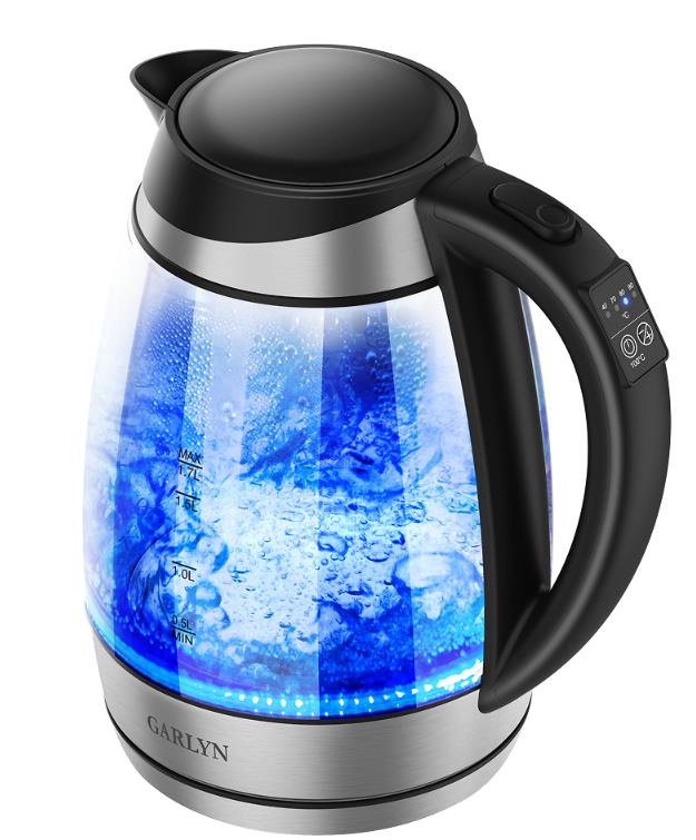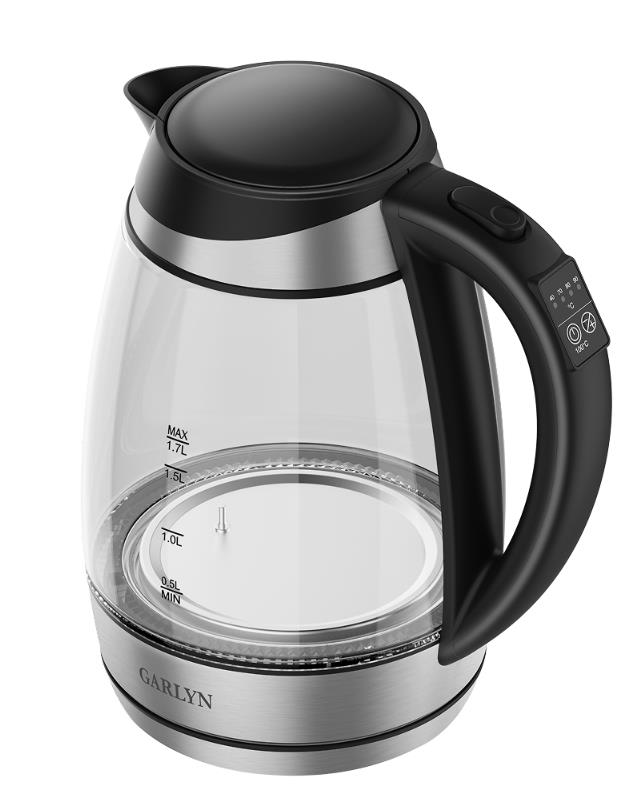 Электрический чайник Garlyn K-310 (2200 Вт/1,7 л /стекло, нержавеющая сталь/прозрачный, черный, серебристый)