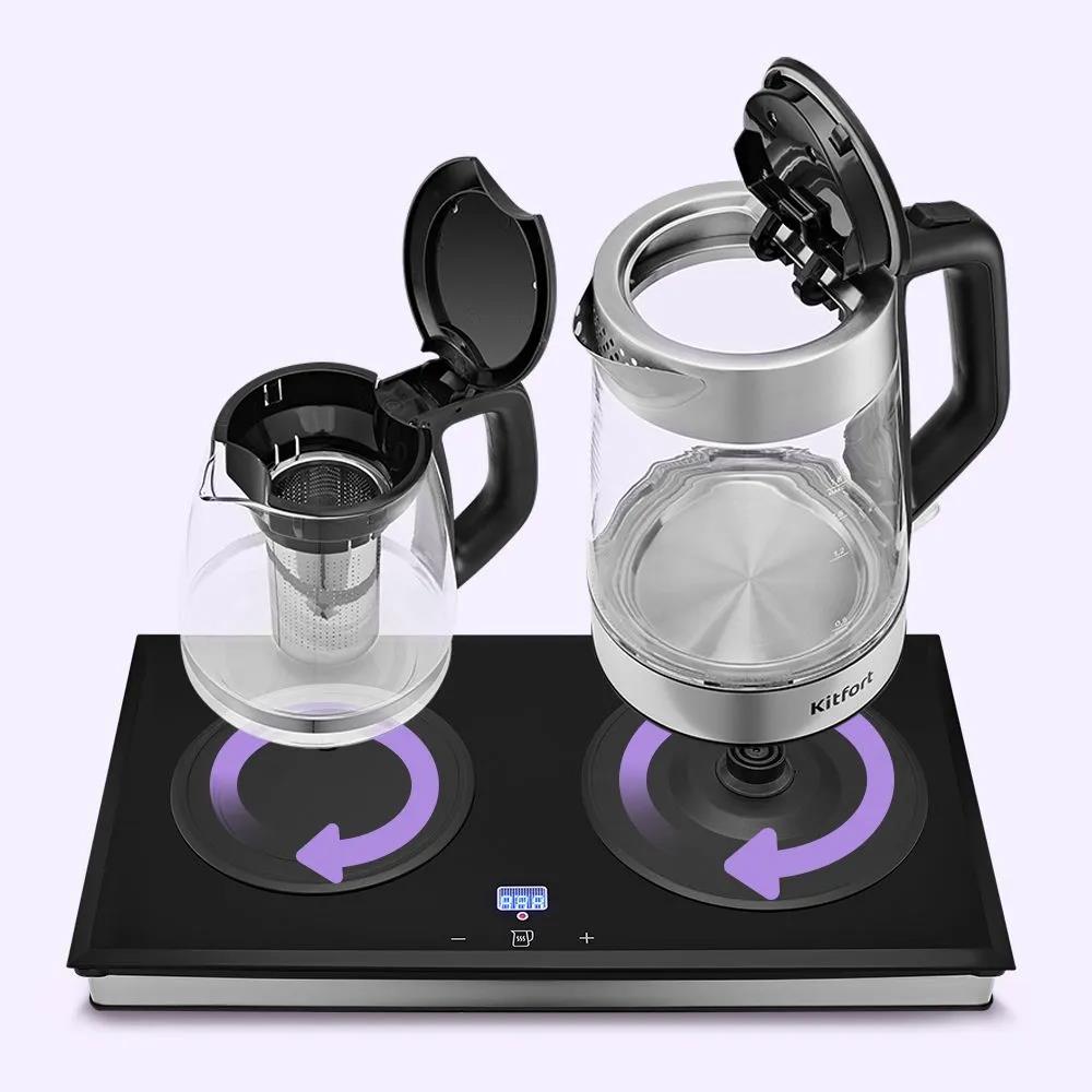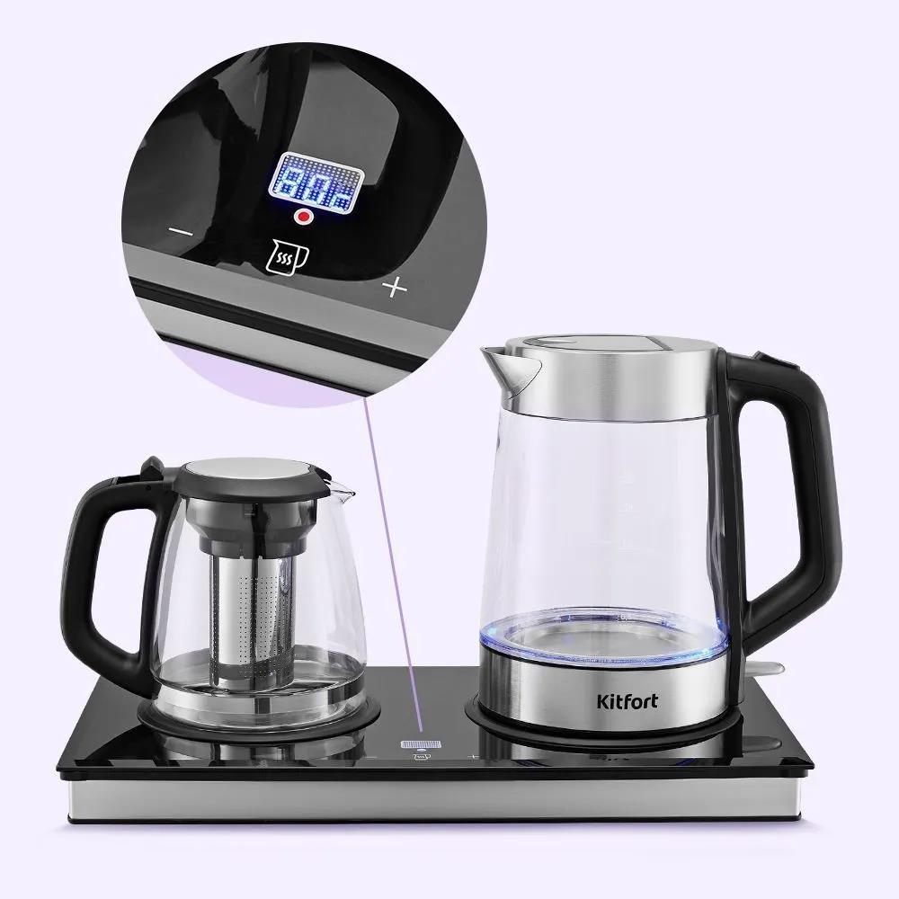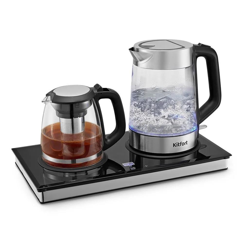 Электрический чайник Kitfort Чайный набор КТ-6776 (2200 Вт/1,8 л /стекло, пластик, нержавеющая сталь/прозрачный, черный, серебристый)
