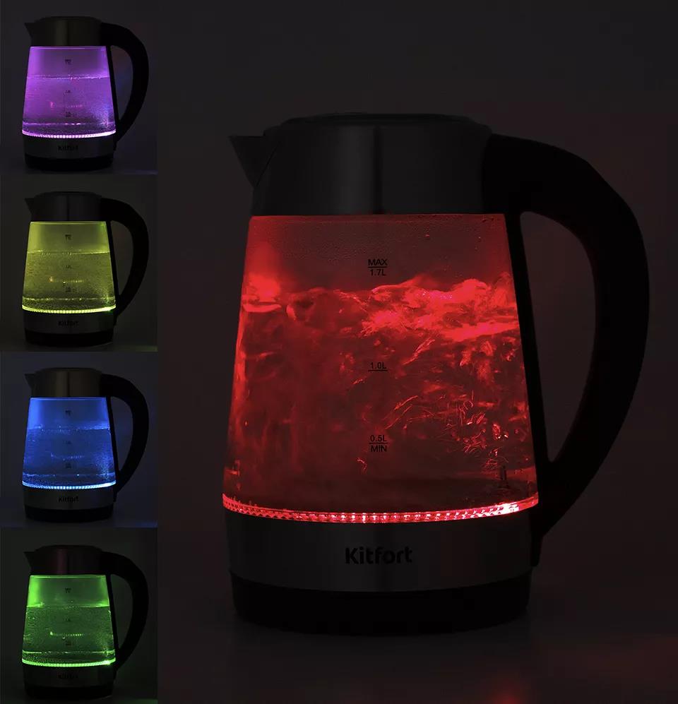 Электрический чайник Kitfort КТ-6107 (2000 Вт/1,7 л //прозрачный, черный, серебристый)