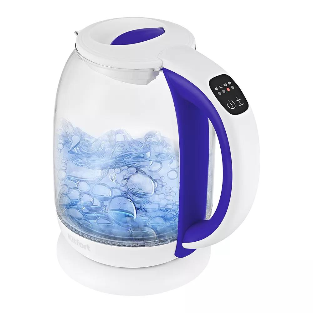 Электрический чайник Kitfort КТ-6140-1 (2200 Вт/1,7 л /стекло, пластик/белый, фиолетовый) - Интернет-магазин ВСЁ В ОДНОМ.РФ: бытовая техника, электроника, товары для дома и др.