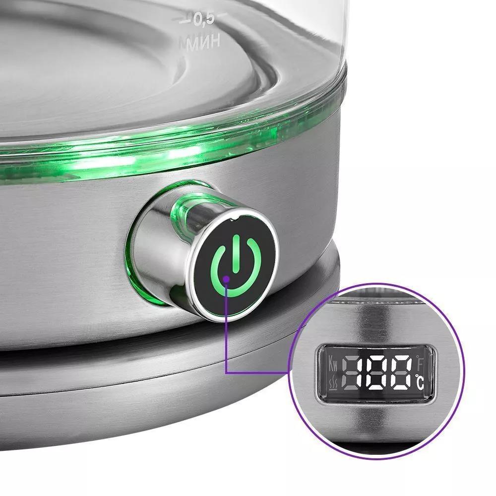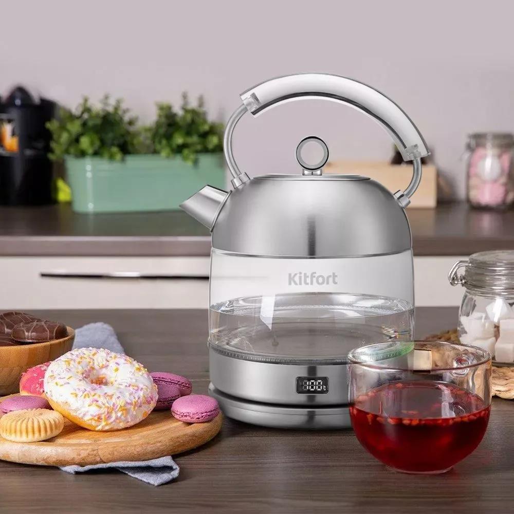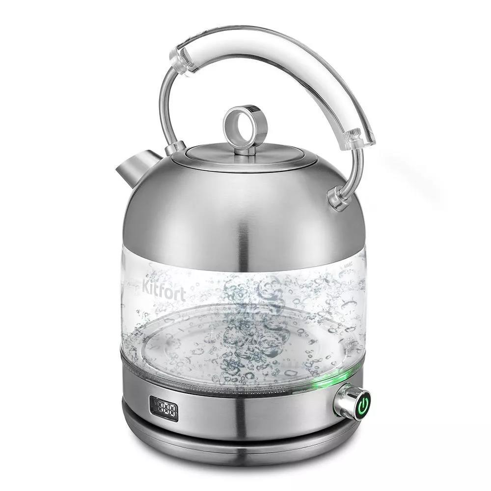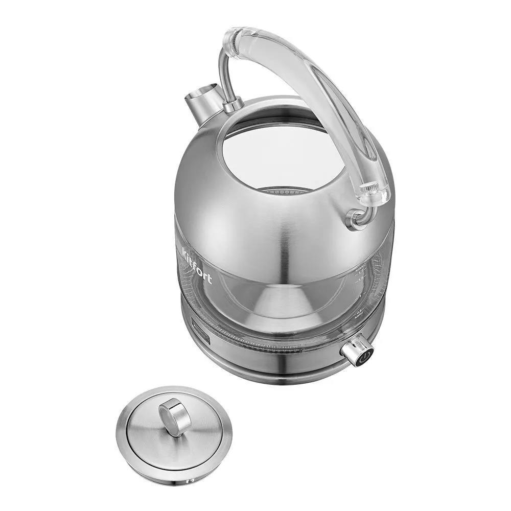 Электрический чайник Kitfort КТ-6172 (2000 Вт/1,7 л /стекло, нержавеющая сталь/прозрачный, серебристый)