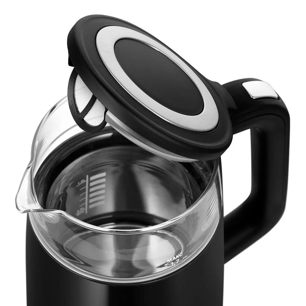 Электрический чайник Kitfort КТ-6611 (2000 Вт/1,7 л /стекло, пластик, нержавеющая сталь/черный, серебристый)