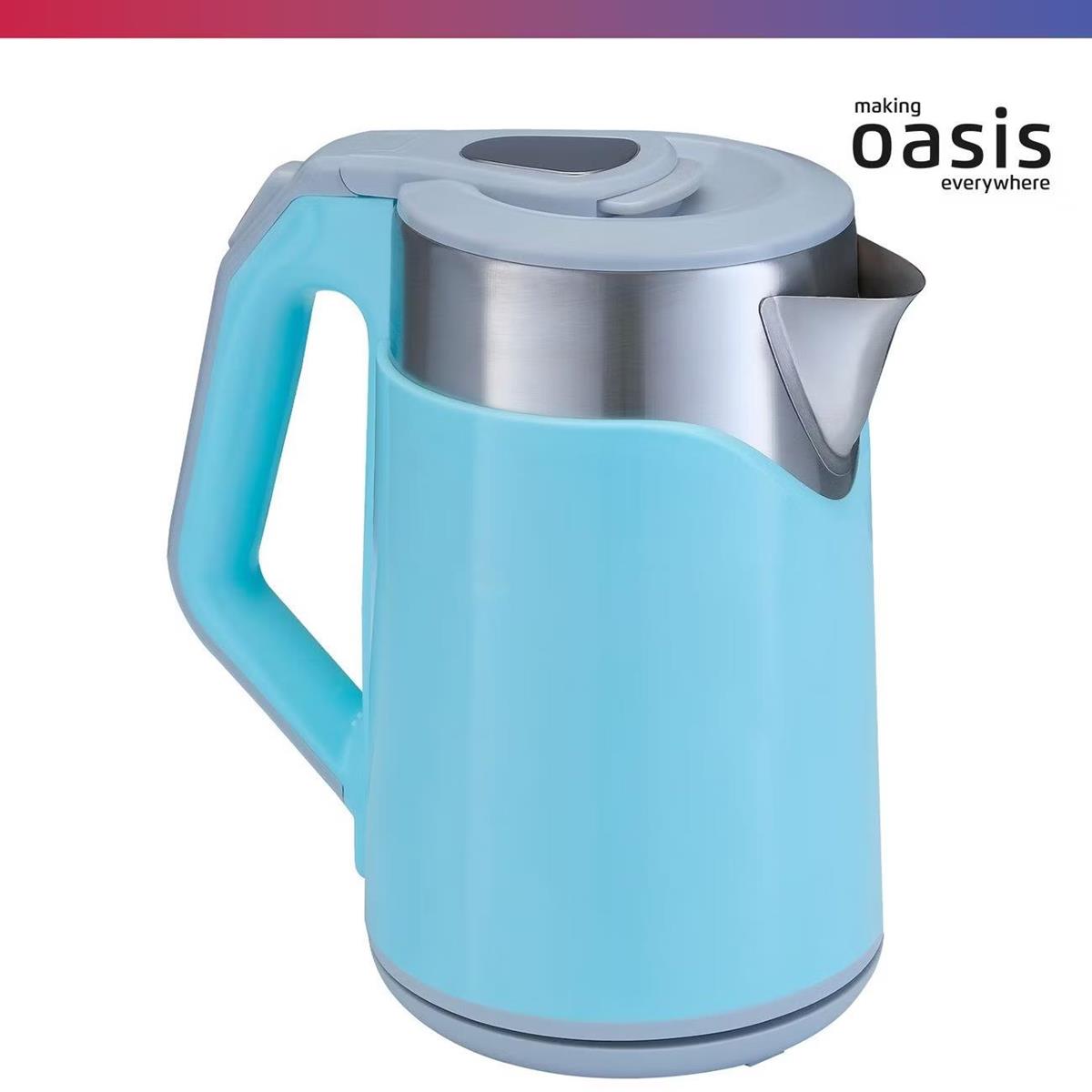 Электрический чайник Oasis K-21SPL (1800 Вт/2 л /пластик, нержавеющая сталь/голубой)
