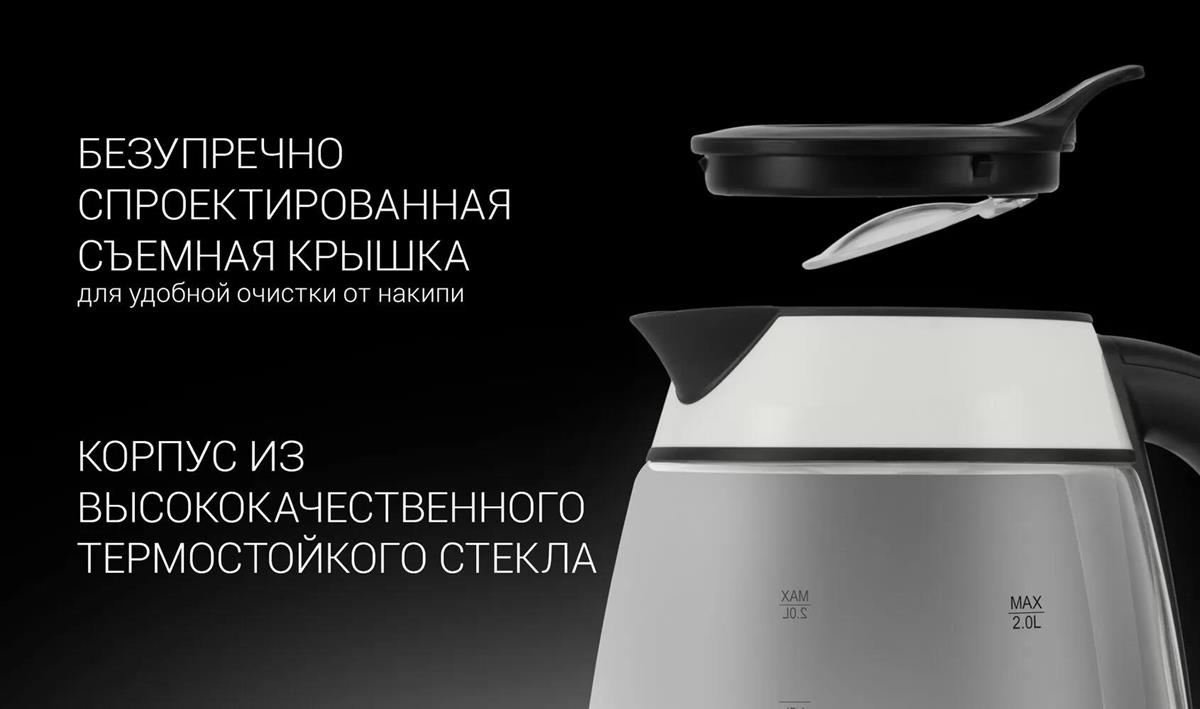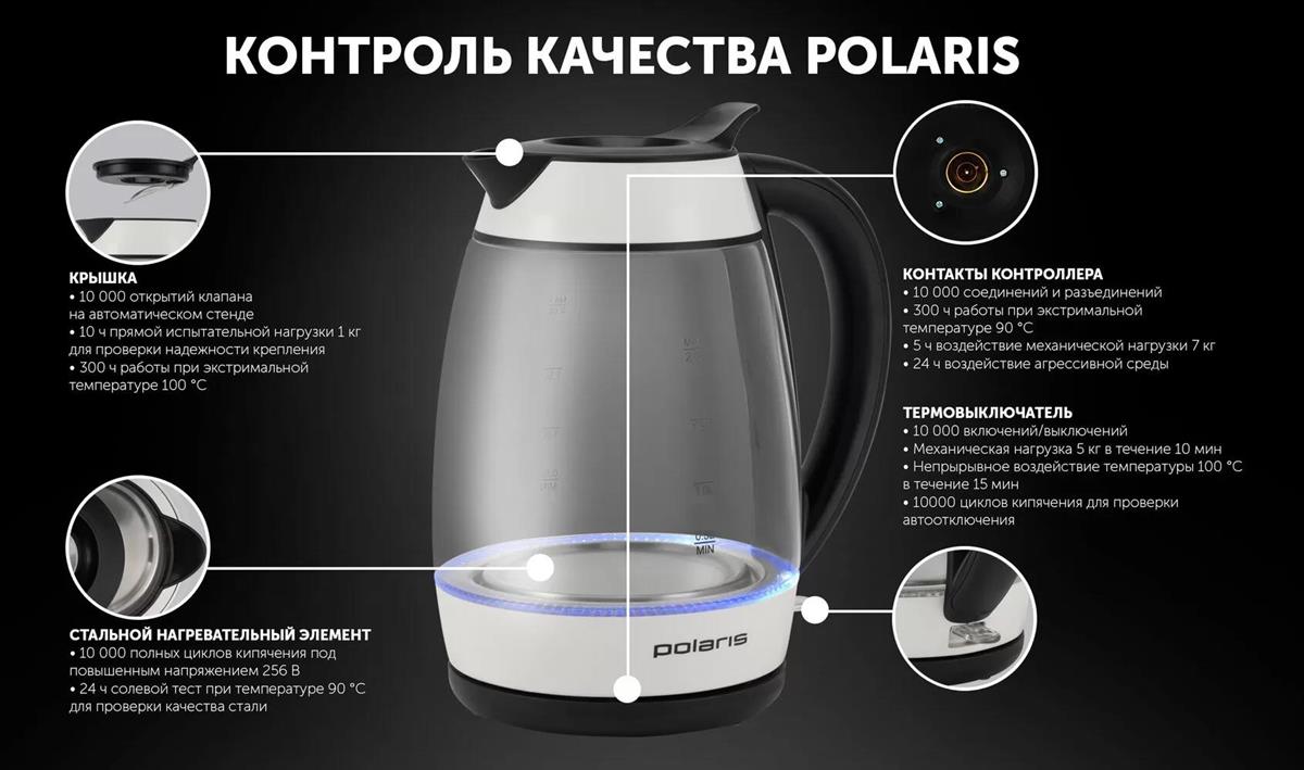 Электрический чайник Polaris PWK-2092СGL (2200 Вт/2 л /стекло/прозрачный, белый, черный) - Интернет-магазин ВСЁ В ОДНОМ.РФ: бытовая техника, электроника, товары для дома и др.