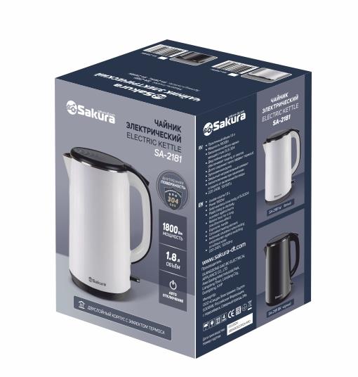 Электрический чайник Sakura SA-2181W (18 Вт/1,8 л /пластик, нержавеющая сталь/белый, черный)