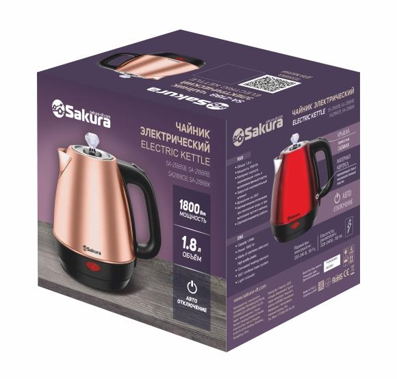 Электрический чайник Sakura SA-2188RB (1.8) (1800 Вт/1,8 л /пластик, нержавеющая сталь/красный, черный) - Интернет-магазин ВСЁ В ОДНОМ.РФ: бытовая техника, электроника, товары для дома и др.