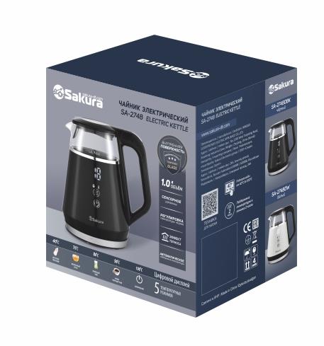 Электрический чайник Sakura SA-2748DBK (1100 Вт/1 л /стекло, металл, пластик/черный)