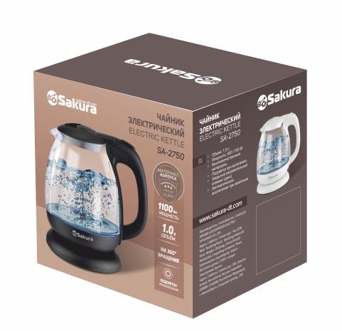 Электрический чайник Sakura SA-2750W (1100 Вт/1 л /стекло/прозрачный, белый) - Интернет-магазин ВСЁ В ОДНОМ.РФ: бытовая техника, электроника, товары для дома и др.