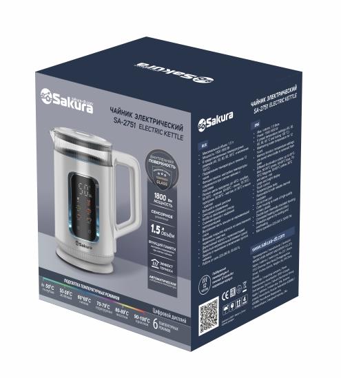 Электрический чайник Sakura SA-2751DW (1800 Вт/1,5 л /стекло, металл, пластик/белый) - Интернет-магазин ВСЁ В ОДНОМ.РФ: бытовая техника, электроника, товары для дома и др.