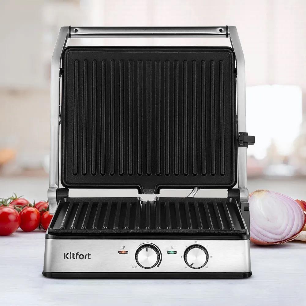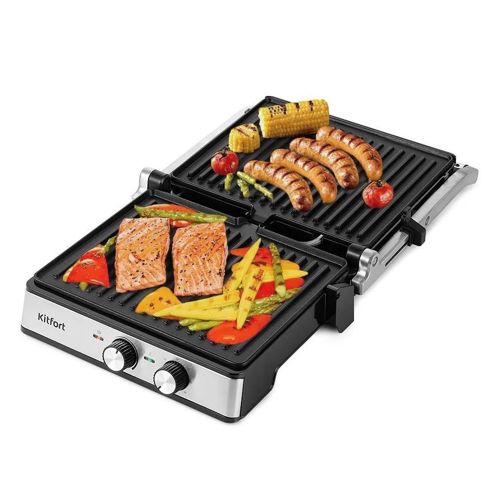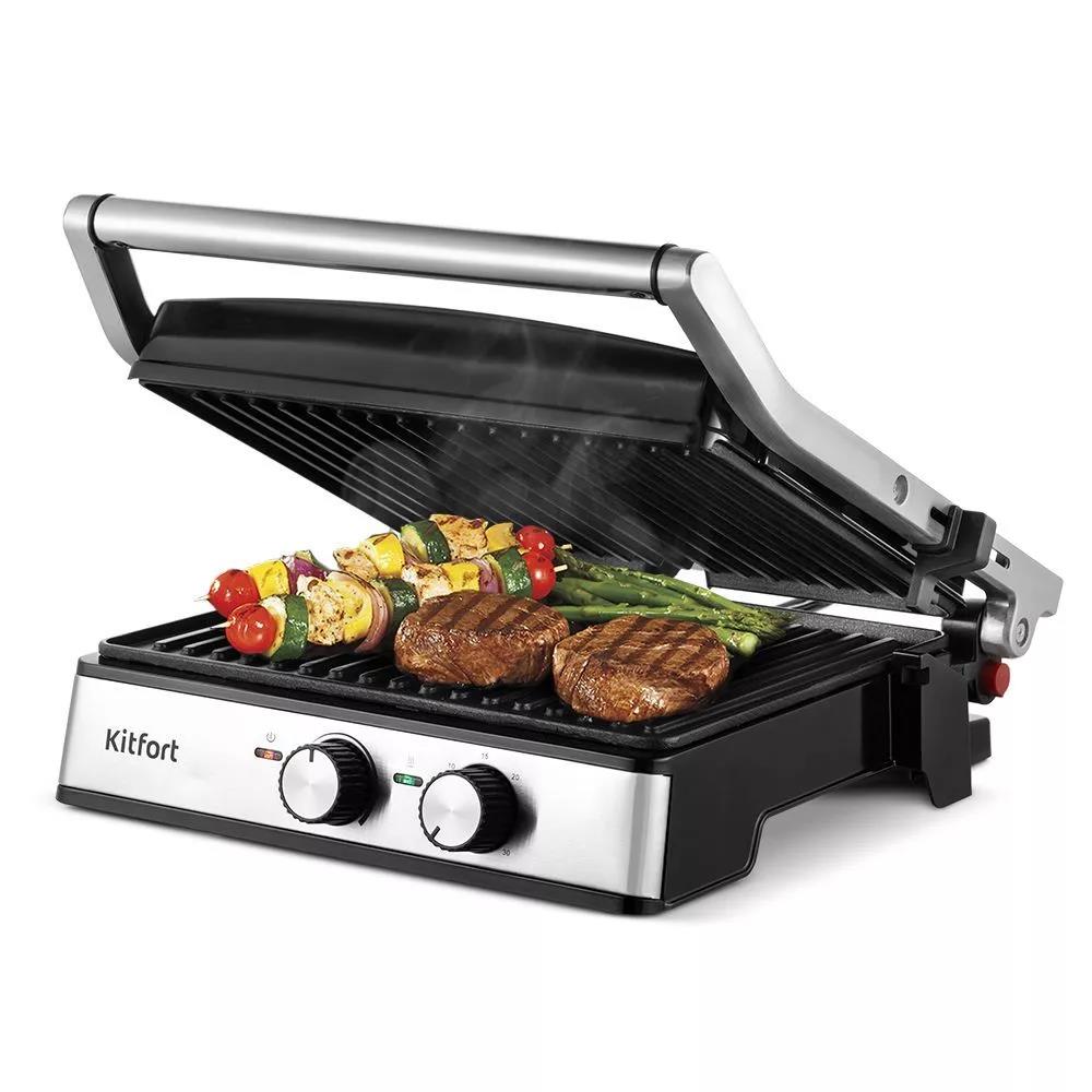 Электрический гриль Kitfort КТ-3601 2000Вт серебристый/черный, 2000 Вт - Интернет-магазин ВСЁ В ОДНОМ.РФ: бытовая техника, электроника, товары для дома и др.