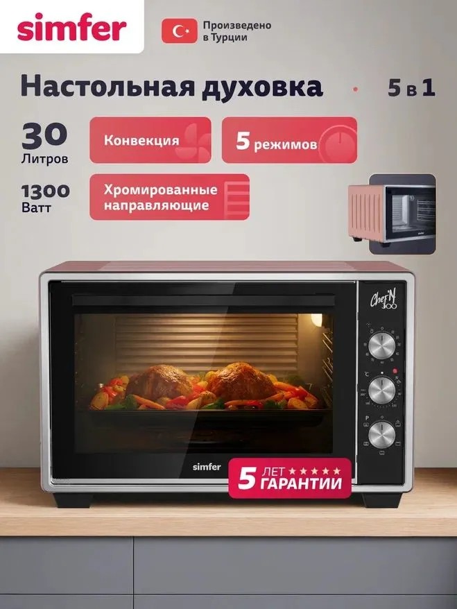 Электропечь Simfer M30X15 (30 л /1300 Вт /розовый)