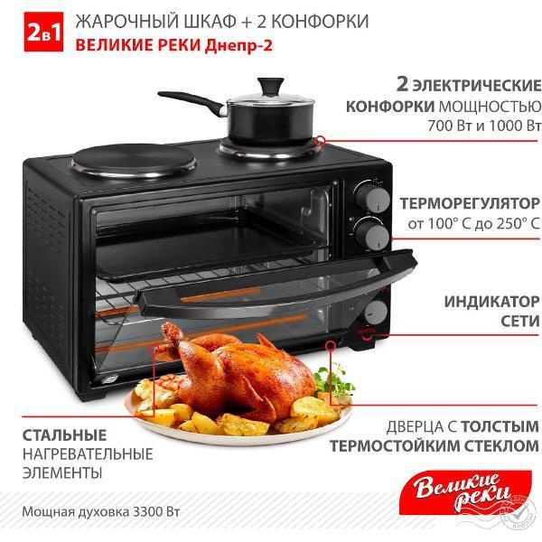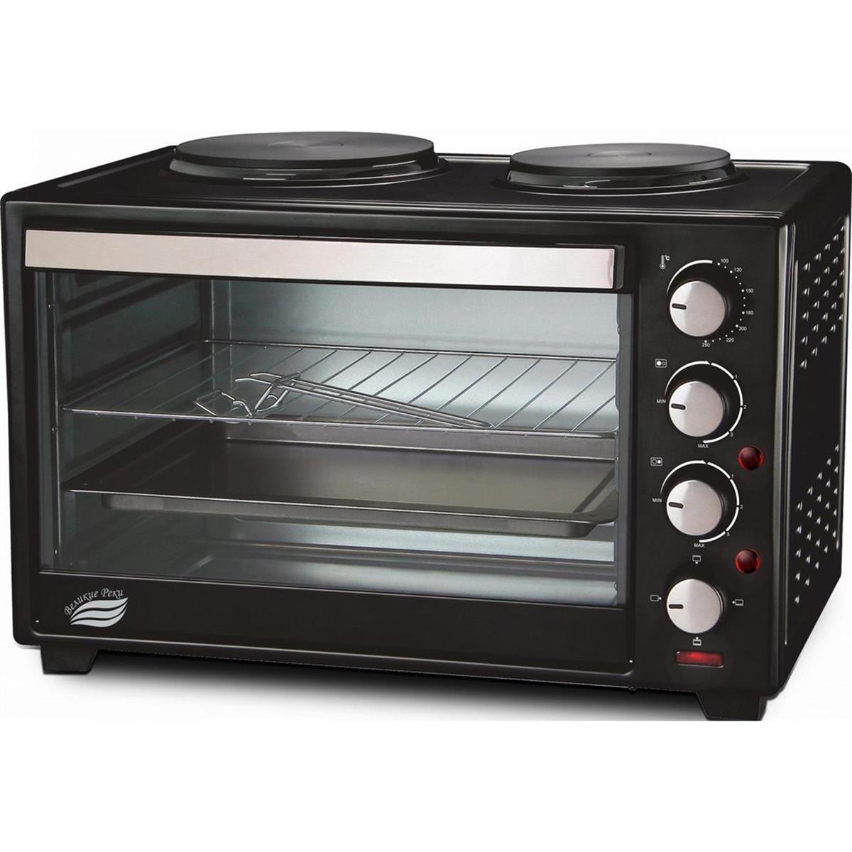 Электропечь Великие реки Днепр-2, мощность 3300 Вт, 2 конфорки, 30 л, 2 противня (30 л /3300 Вт /черный)
