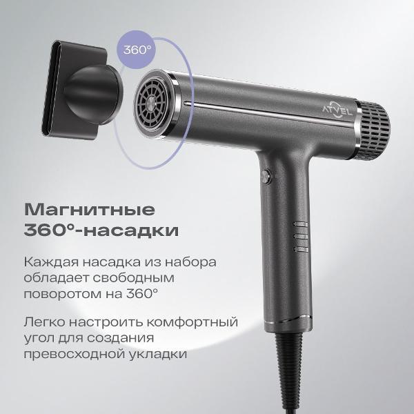 Фен Atvel AirJet HD6 (1200 Вт /серый) - Интернет-магазин ВСЁ В ОДНОМ.РФ: бытовая техника, электроника, товары для дома и др.