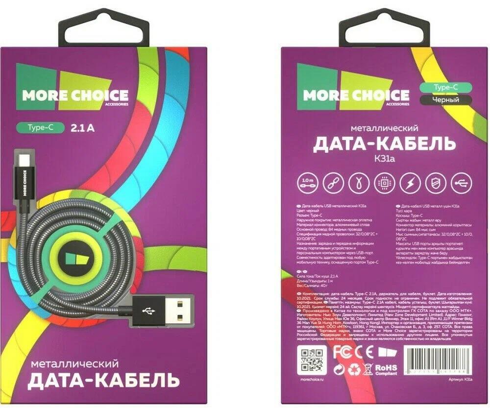 Кабель соединительный More Choice K31a USB 2.0 A USB Type-C черный 1 м - Интернет-магазин ВСЁ В ОДНОМ.РФ: бытовая техника, электроника, товары для дома и др.