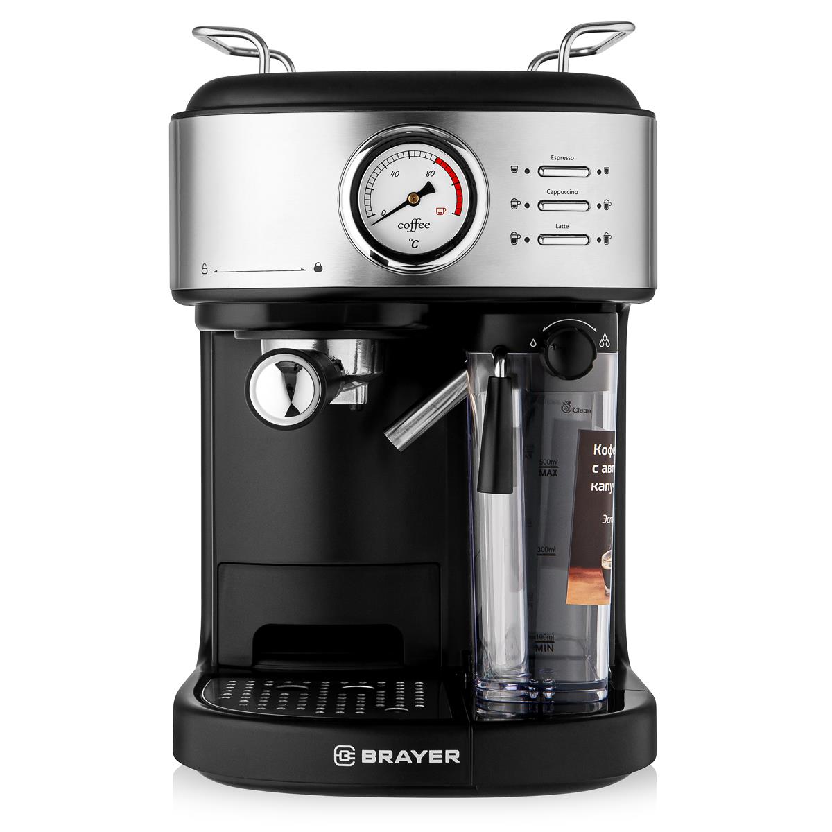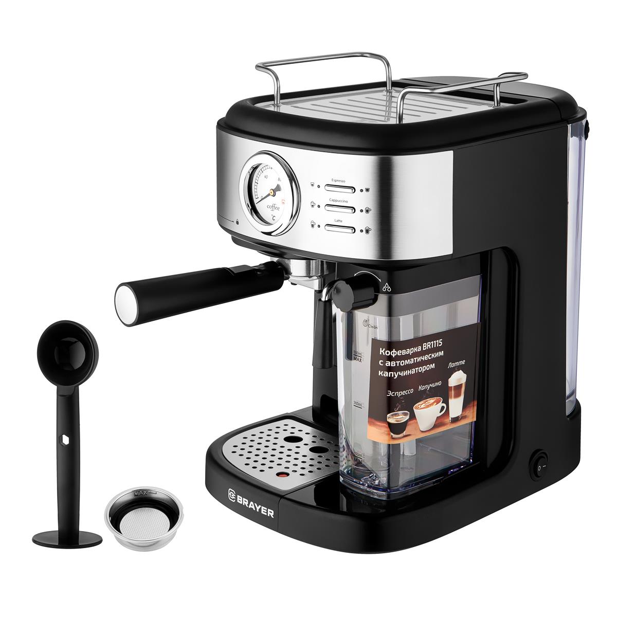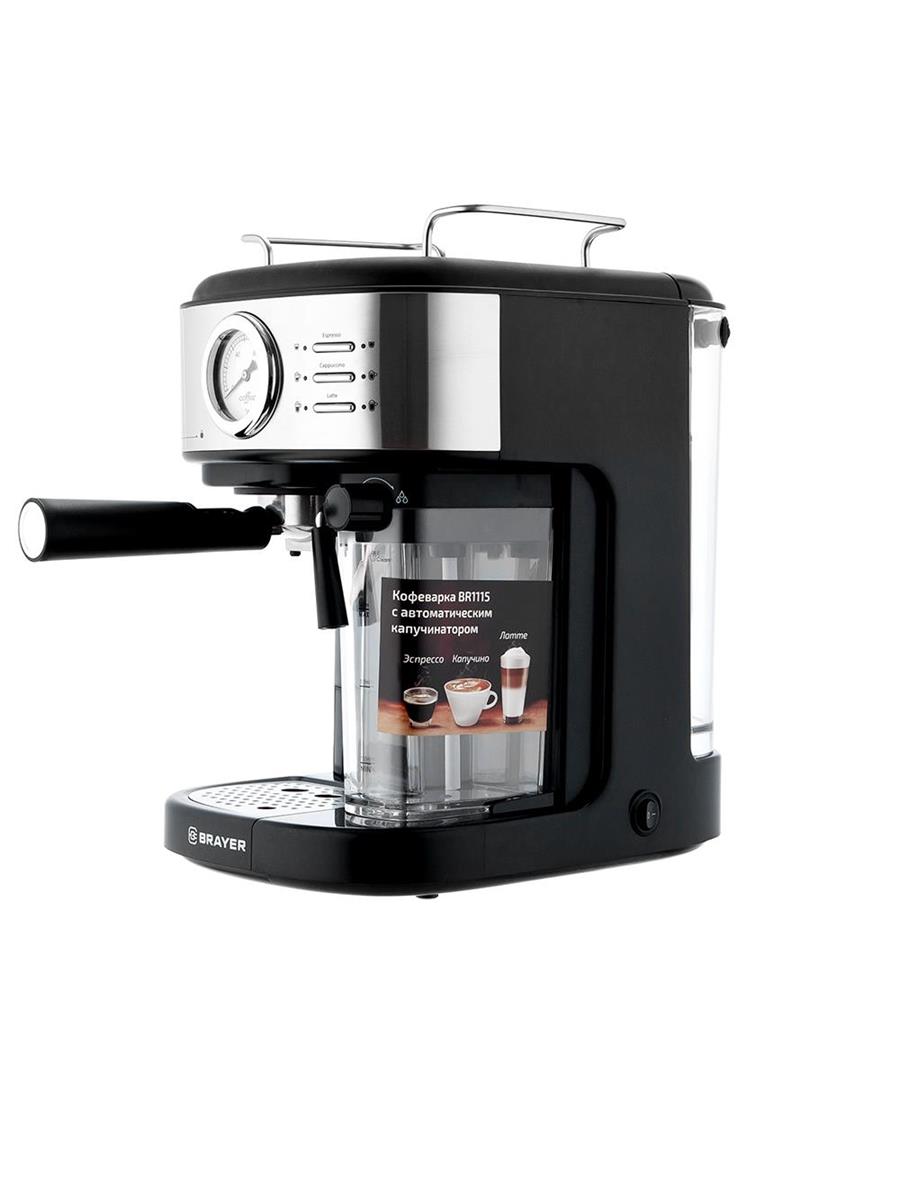 Кофеварка Brayer BR1115 черный, исп. кофе - молотый, 1.5 л, 1300 Вт, 15 Бар (рожковая/1,5 л /1300 Вт ) - Интернет-магазин ВСЁ В ОДНОМ.РФ: бытовая техника, электроника, товары для дома и др.
