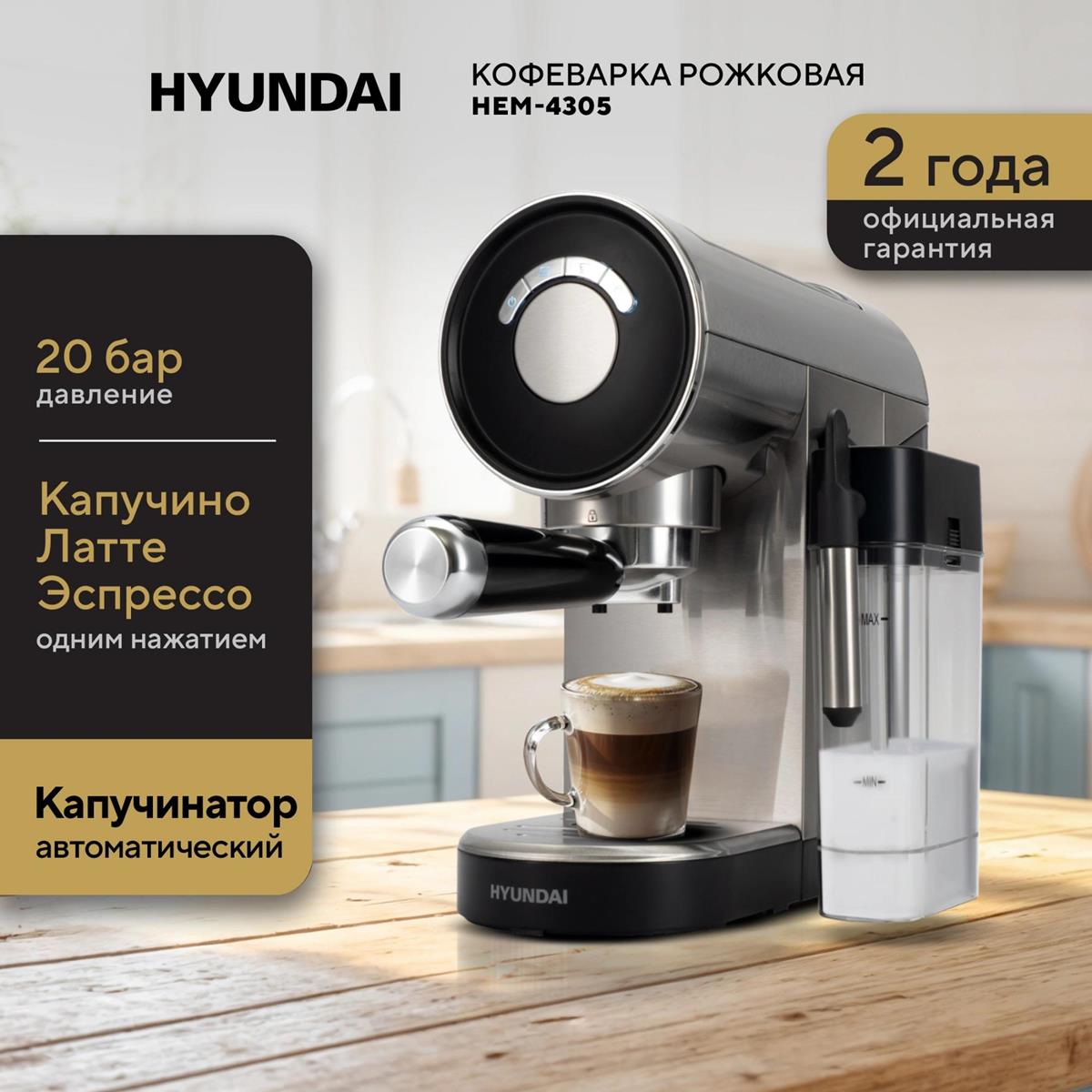 Кофеварка Hyundai HEM-4305 серебристый/черный (рожковая//1350 Вт ) - Интернет-магазин ВСЁ В ОДНОМ.РФ: бытовая техника, электроника, товары для дома и др.