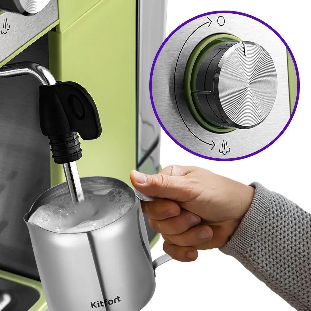 Кофеварка Kitfort КТ-7442 850Вт зеленый/нержавеющая сталь (рожковая/1,6 л /850 Вт )