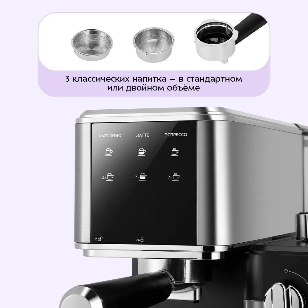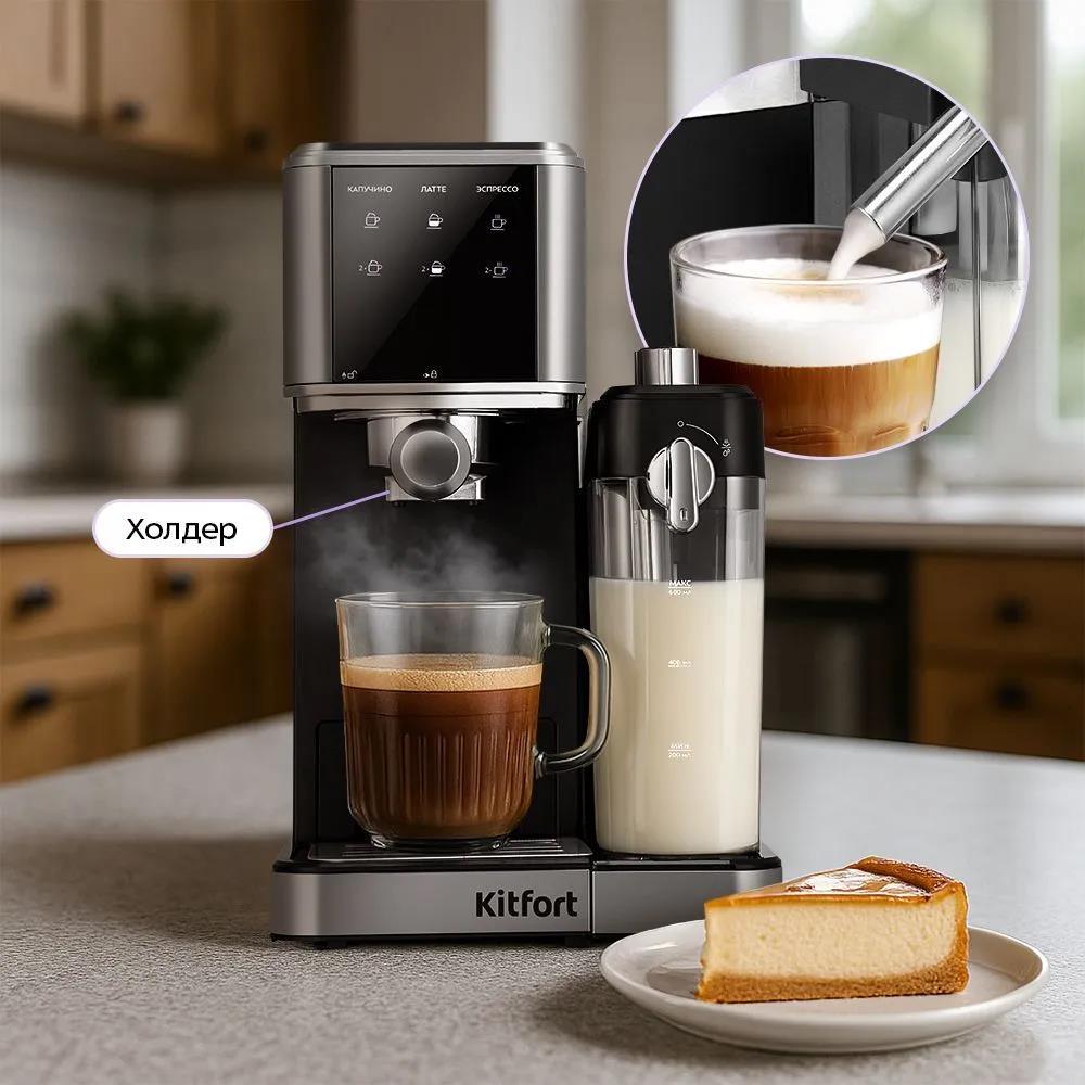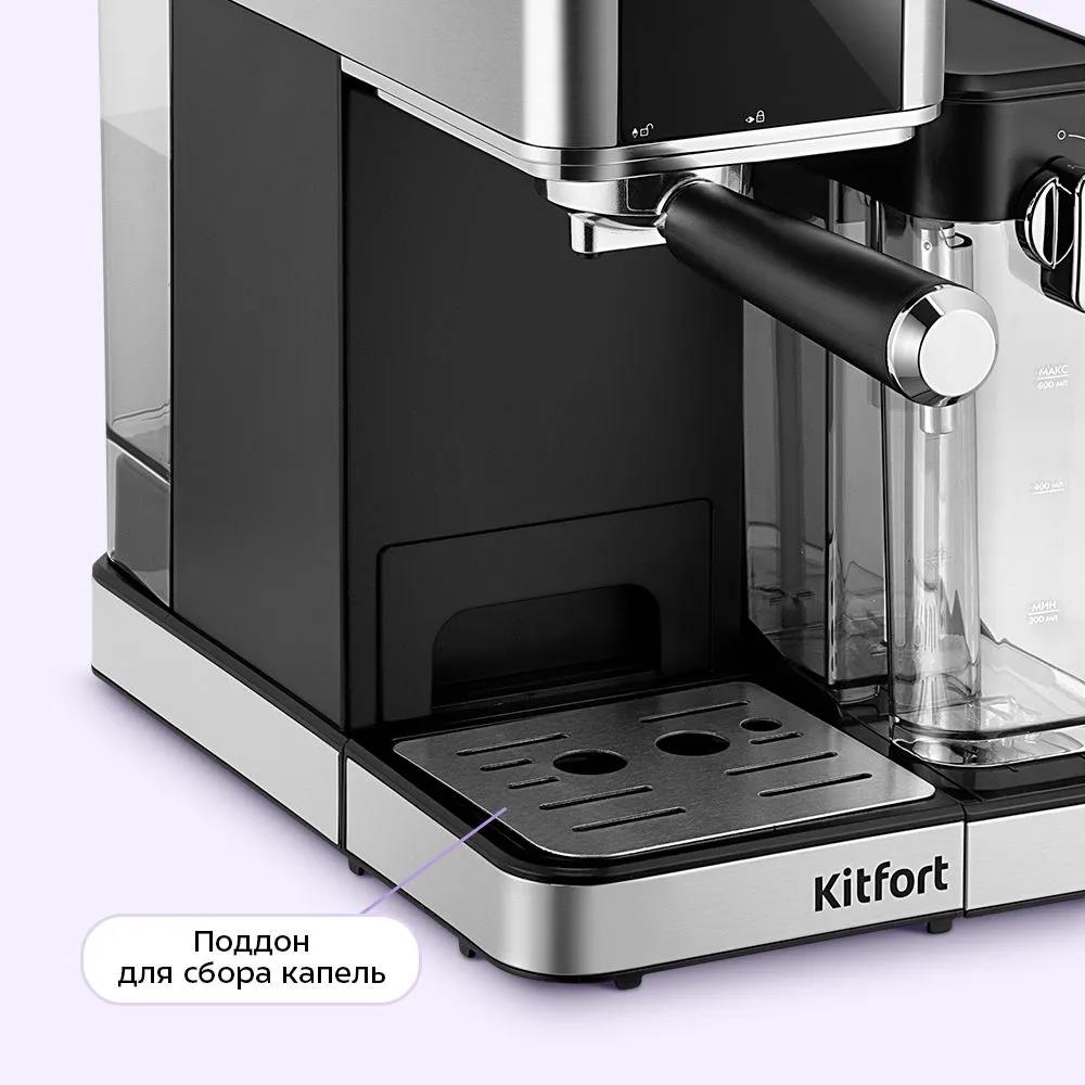 Кофеварка Kitfort КТ-7693 1350Вт нержавеющая сталь/черный (рожковая/1 л /1350 Вт )