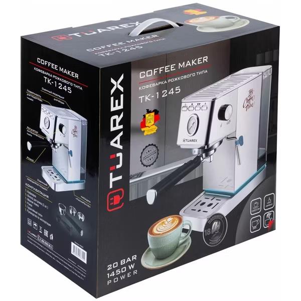 Кофеварка TUAREX TK-1245 серебристый/ серый (рожковая//1450 Вт )