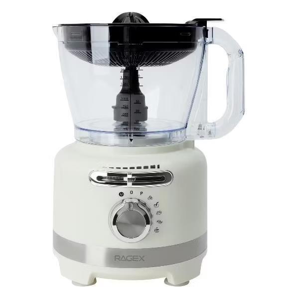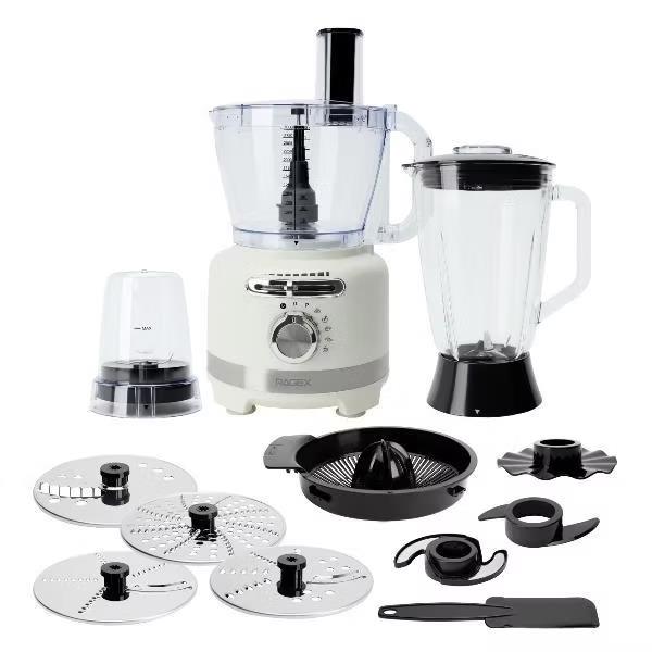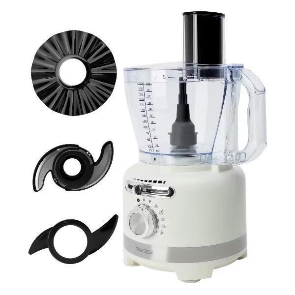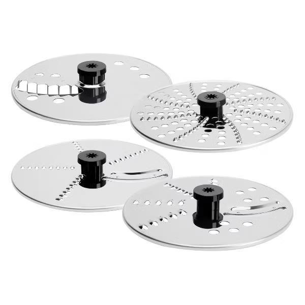 Комбайн с насадками и терками совмещает в себе функции электрической мясорубки, стационарного блендера, измельчителя, кофемолки и соковыжималки для цитруса, а также подходит для колки льда. Мощный прибор имеет несколько скоростей, которые регулируются вручную. В том числе автоматические режимы для колки льда, смузи, замешивания теста, измельчения, самоочистки и импульсный режим. В комплект устройства входит: диск эмульгатор, пластиковый нож для замешивания теста, 4 диска из высококачественной нержавеющей стали: лезвие для нарезки картофеля фри, диск-жюльен для крупной и мелкой шинковки, терка для драников.