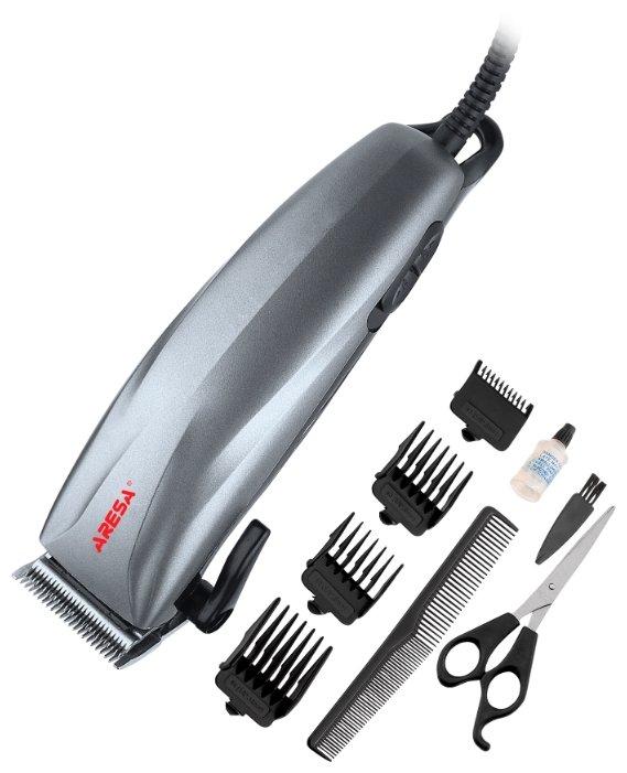 Машинка для стрижки Aresa AR-1804 отлично подходит для домашнего использования, когда необходимо поправить имеющуюся стрижку или подстричь ребенка. Машинка оснащена вибрационным мотором мощностью в 10 Вт и подключается к сети в 220 В. Длина стрижки, сделанной при помощи данной машинки, может варьироваться в пределах 3 - 12 мм. Регулировать длину позволяют 4 насадки, предлагаемые с машинкой в комплекте, а также кнопка-регулятор длины. Машинка для стрижки Aresa AR-1804 имеет эргономичный корпус, что делает ее удобной и маневренной. А кнопка включения расположена так, чтобы ее можно было легко переключать одним пальцем. Лезвия из нержавеющей стали заточены по специальной технологии, которая обеспечивает их идеальную остроту. Благодаря этому стрижка осуществляется максимально точно и быстро. Вместе с машинкой для стрижки предлагаются расческа и ножницы, позволяющие корректировать какие-либо недочеты. Также в наборе есть масленка и щеточка для чистки лезвий.