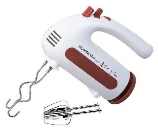 VICONTE VC-351 - миксер изготовлен из высококачественного металла и пластика. Двойной набор насадок: два венчика для взбивания яиц и кремов, две насадки для размешивания тяжелого теста, смешивание жидкостей, замешивание теста, приготовление пюре, взбивание сливок и белков.