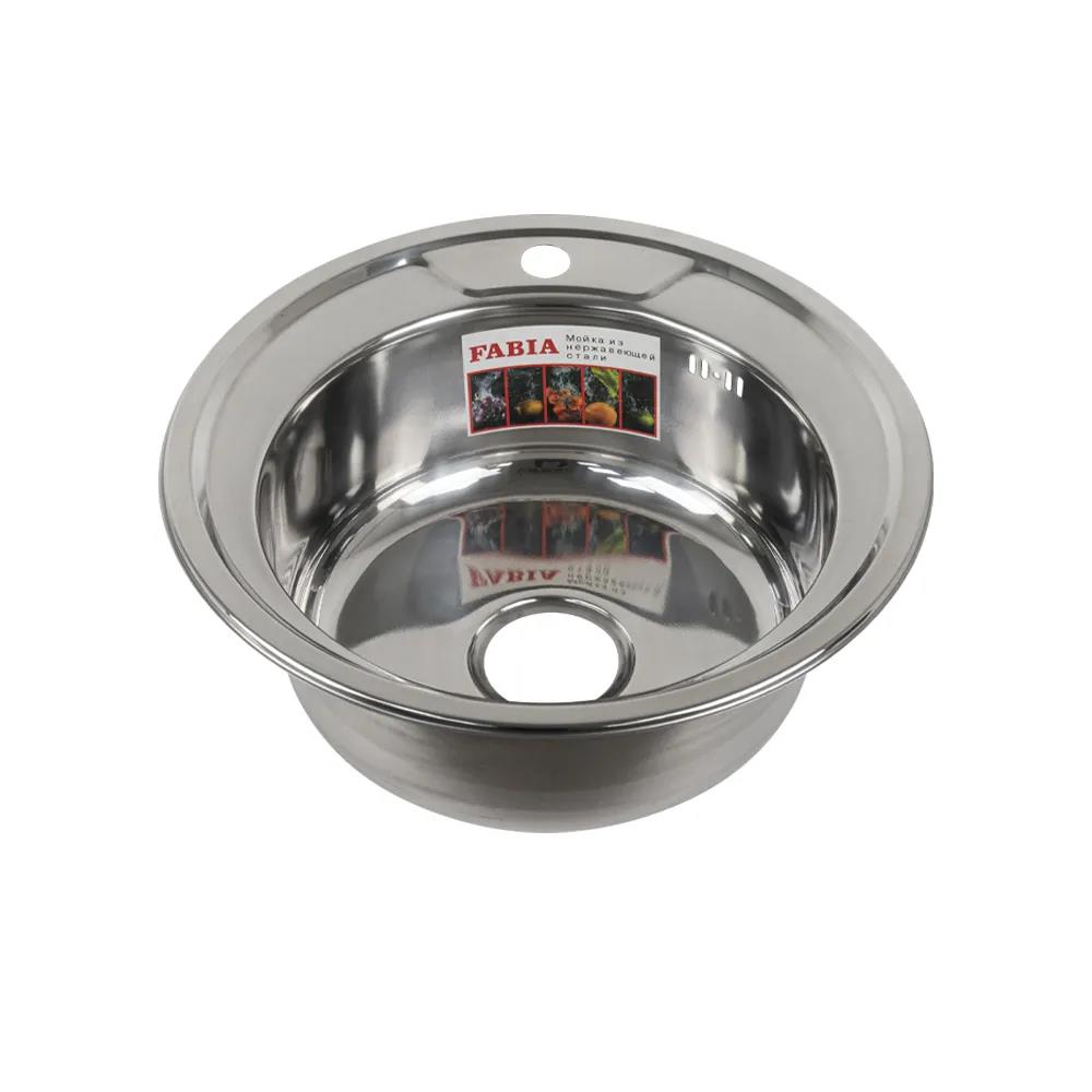 Врезная мойка FABIA из нержавеющей стали толщиной 0,8 мм – отличный вариант для кухни, она прослужит многие годы. Классическая форма и хромированный цвет гармонично впишутся в любой интерьер и никогда не выйдут из моды. Оптимальный размер диаметром 49 см и глубина 180 мм позволяет свободно помыть посуду, без страха её разбить. Мойка врезается в столешницу. Специальное дополнительное антишумовое покрытие, нанесенное на обратную сторону чаш, разработано для снижения шума воды в мойке.Конструкция краев мойки, крепления и специальная уплотнительная прокладка обеспечивает максимально плотное прилегание к столешнице и защищает от протекания.Практичная площадка, расположенная по центру, даёт возможность вмонтировать любую понравившуюся модель смесителя.
