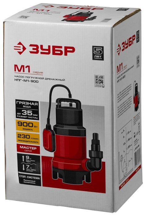 Погружной дренажный ЗУБР НПГ-М1-900 900 Вт 9 м грязная)