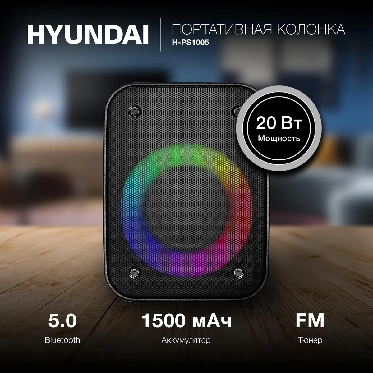 Портативная акустика Hyundai H-PS1005 20 Вт 1.0 BT 10м 1800mAh (20 Вт черный) - Интернет-магазин ВСЁ В ОДНОМ.РФ: бытовая техника, электроника, товары для дома и др.
