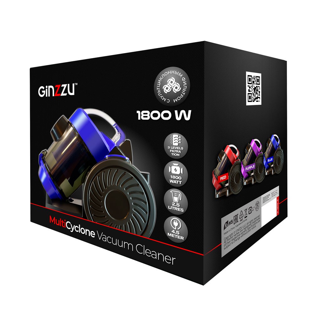 Пылесос Ginzzu VS427 (1800 Вт /контейнер/фиолетовый, черный) - Интернет-магазин ВСЁ В ОДНОМ.РФ: бытовая техника, электроника, товары для дома и др.