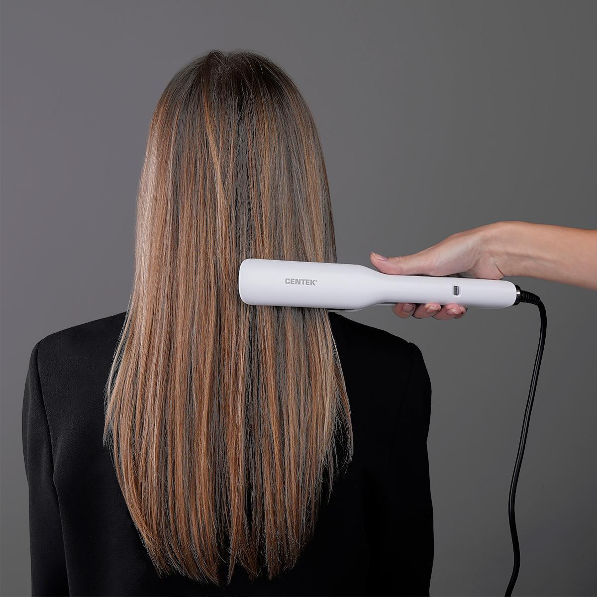 Выпрямитель CENTEK CT-2033 – плотные и шелковистые волосы как после ухода в салоне! Сочетание керамического покрытия, плавающих пластин и технологии Tourmaline Ionic создает лучшие условия для укладки волос – без статического электричества и лишней потери влаги. Наличие индикации позволит понять, когда выпрямитель готов к работе, на выбор – несколько температурных режимов: 160/180/200/220 °C.