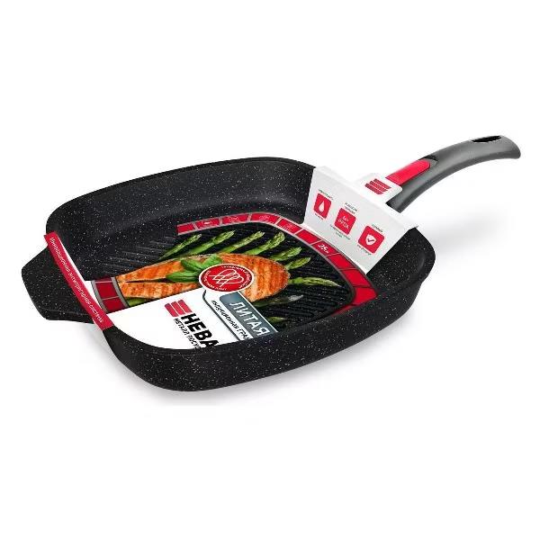 Сковорода-гриль НЕВА МЕТАЛЛ ПОСУДА L184028Gi литая Индукция Гранит с/р (28 см )