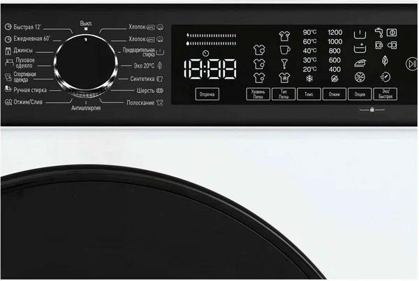 Тип загрузки: фронтальная; Максимальная загрузка белья: 12 кг; Инверторный двигатель: есть; Максимальная скорость отжима: 1200 об/мин; Тип управления: электронное; Цвет: белый; Сушка: нет; Количество программ стирки: 15;