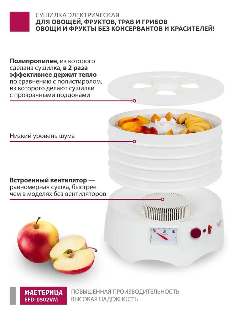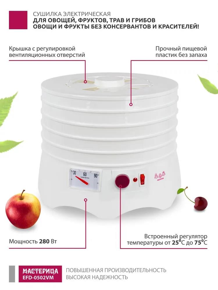 Сушилка для овощей Мастерица EFD-0502VM 5 поддонов + 1 поддон д/пастилы (поддонов 5 шт, 280 Вт , белый) - Интернет-магазин ВСЁ В ОДНОМ.РФ: бытовая техника, электроника, товары для дома и др.