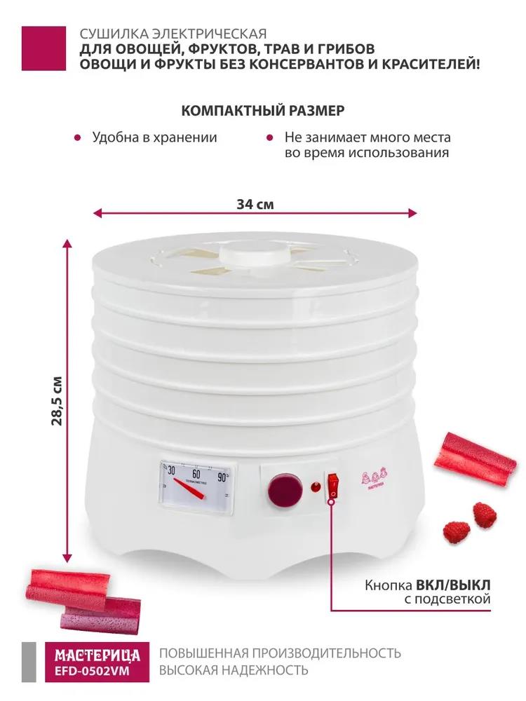 Сушилка для овощей Мастерица EFD-0502VM 5 поддонов + 1 поддон д/пастилы (поддонов 5 шт, 280 Вт , белый)